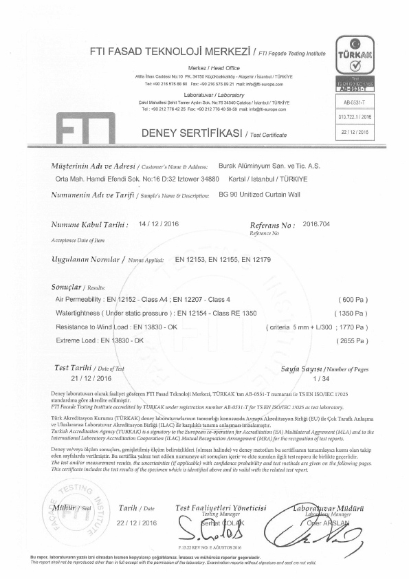 BG – 90 Curtain Wall System Test Report